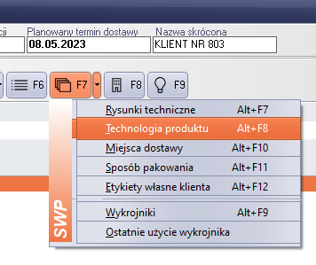 Ctrl + F6 – Dodatkowe informacje produkcyjne (dostępne w fazie produkcji)