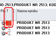Jeśli wykrojniki zostały przypisane do kartoteki produktu symbolizowane jest to w kolorem żółtym.