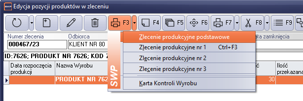 F5 – kartoteka produktu (umożliwia podgląd kartoteki produktu z listy zlecenia)