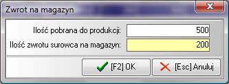 - na magazyn surowców zostanie przekazana ilość zwrotu