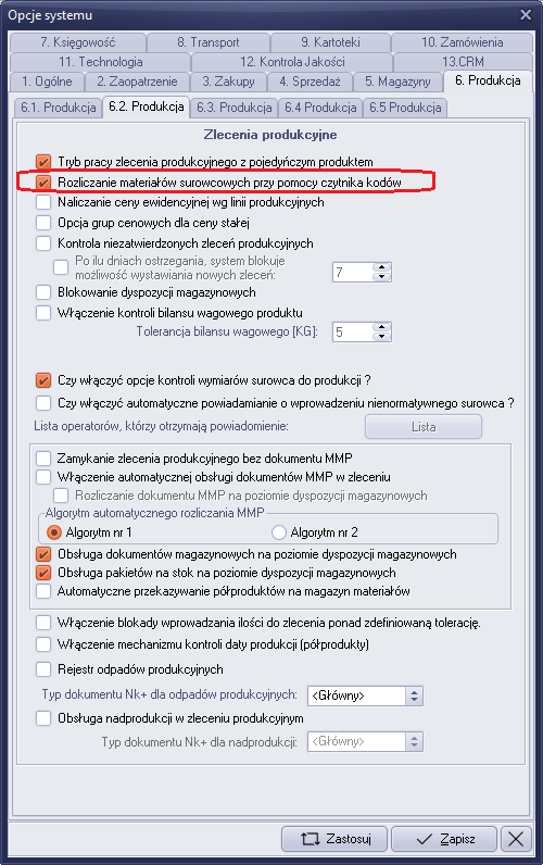 Rysunek 458 Włączenie opcji rozliczenia surowców w trybie pośrednim