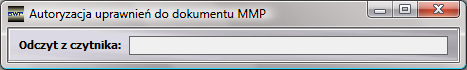 Po pojawieniu się okna, należy przy pomocy czytnika kodów odczytać kartę dostępową. Jeśli autoryzacja przebiegnie prawidłowo, wtedy do obsługi dokumentu MMP zostaną czasowo zmienione uprawnienia. Uprawnienia będą zgodnie z przydzielonymi uprawnieniami operatora danej karty dostępowej. Jeśli autoryzacja będzie niepoprawna lub okno zostanie anulowane (zamknięte), będzie można oglądać okno pozycji dokumentu zgodnie z uprawnieniami operatora zarejestrowanego do systemu. Operator, który będzie odpowiedzialny za obsługę dokumentu MMP, powinien mieć nadane pełne uprawnienia "MMP_DOK"
