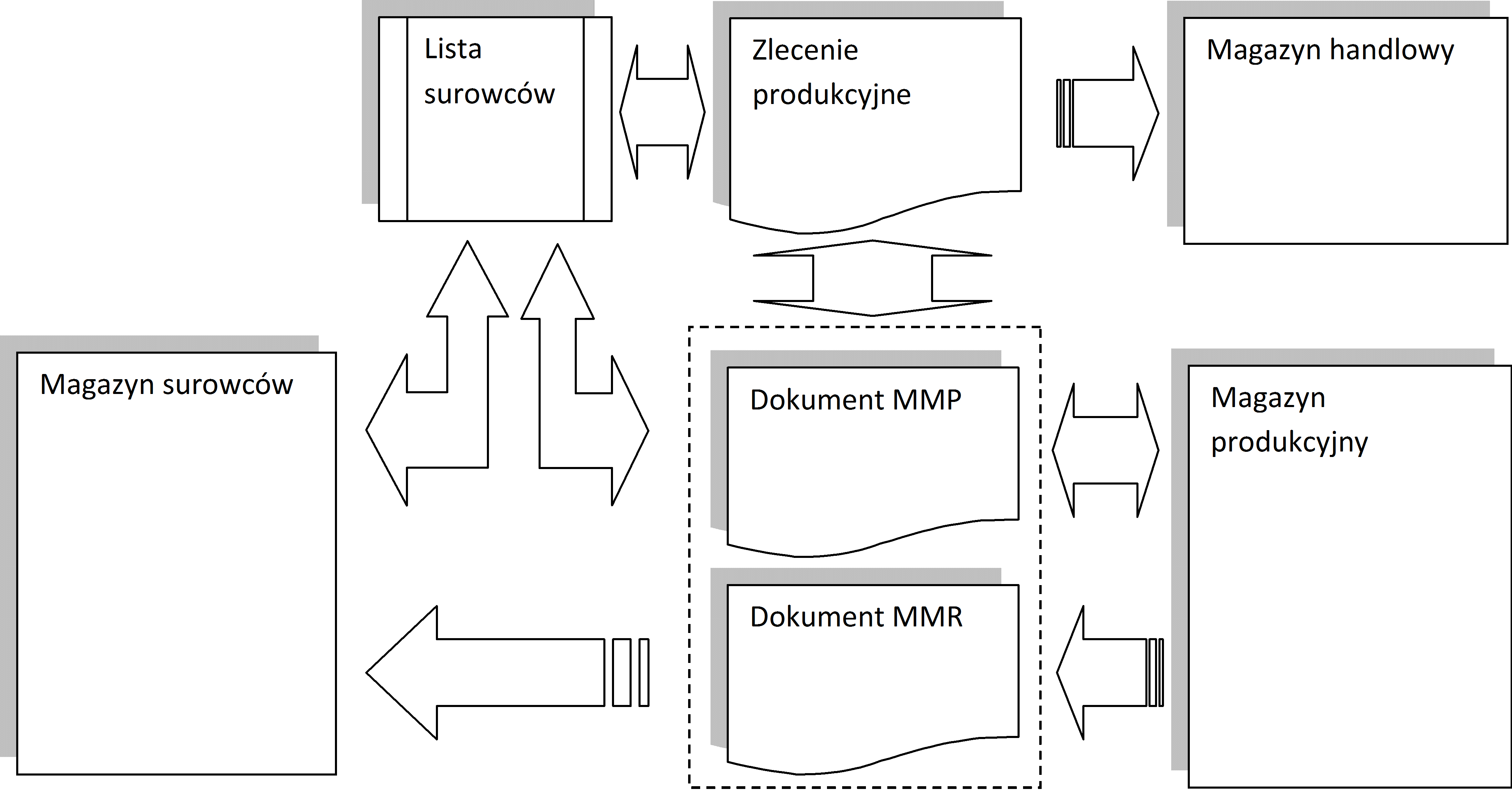 Rysunek 460 Model przepływu informacji w trybie pośrednim rozliczania materiałów surowcowych