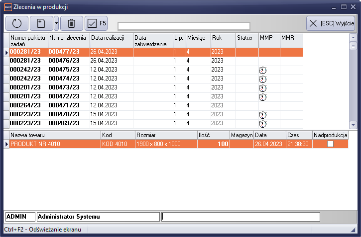 Dyspozycje magazynowe, jest to mechanizm pozwalający na zarządzanie częściowo wyprodukowanym towarem. Często zdarza się, że zlecenie produkcyjne jest wystawione na wyprodukowanie np. 1000 szt. Standardowo towar ten można sprzedać dopiero wtedy, gdy znajdzie się na magazynie handlowym, a więc dopiero po zatwierdzeniu i wycenie zlecenia. Aby umożliwić sprzedaż towaru po wyprodukowaniu części zlecenia np. 500szt. W systemie utworzono właśnie dyspozycje magazynowe. Towar poprzez dyspozycje zostaje wprowadzany na stan magazynowy umożliwiając jednocześnie sprzedaż, natomiast wycena końcowa zostaje wprowadzona po zamknięciu zlecenia.