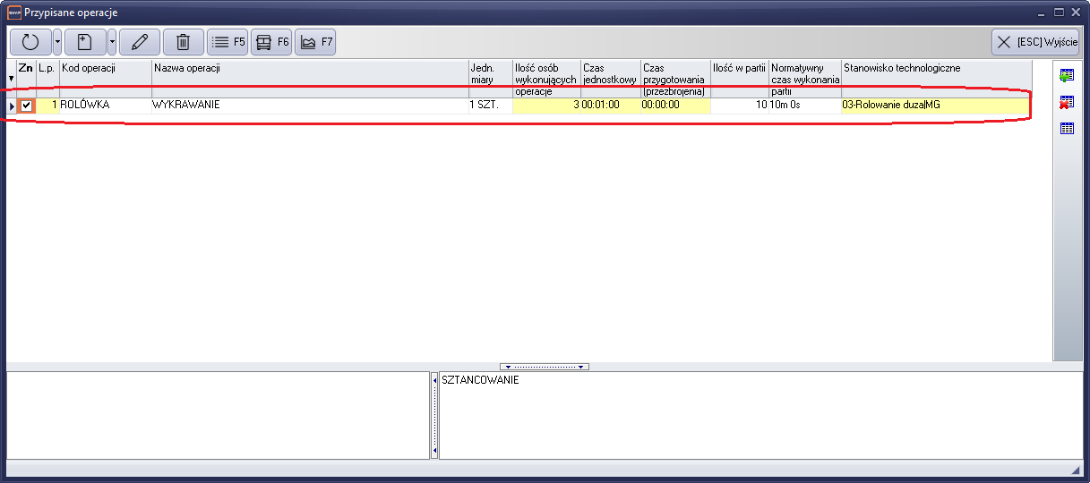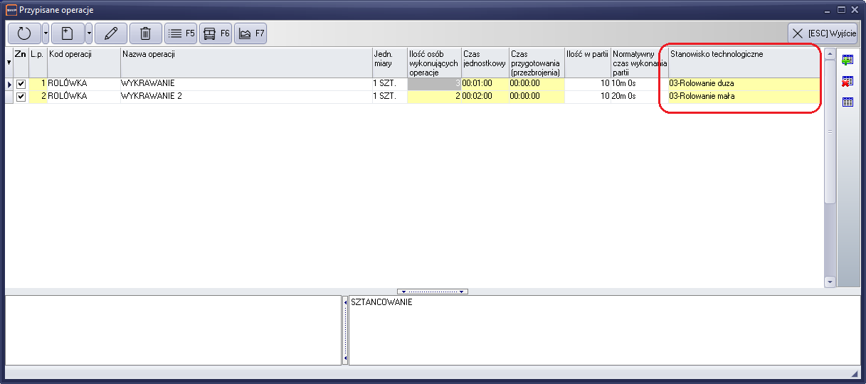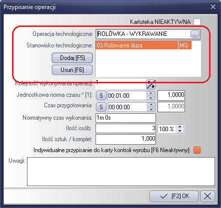 Operacje przypisujemy z poziomu listy operacji technologicznych.