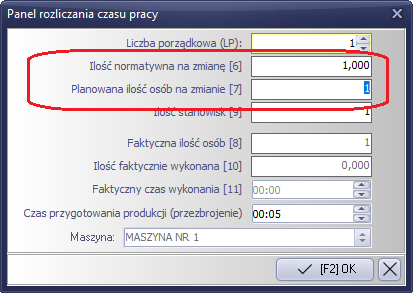 W przypadku zmiany ilości osób w pozycji zlecenia zmianowego, system automatycznie określi ilości do wykonania po korekcie. Zmiana ilości zależna jest od kilku warunków. Po pierwsze czy ilość po zmianie nie jest większa od ilości w zleceniu produkcyjnym lub czy czas wykonania ilości po korekcie nie przekroczy czasu przeznaczonego dla danej zmiany. Jeśli któryś w warunków nie zostanie spełniony, system automatycznie skoryguje ilości do maksymalnie możliwych oraz jeśli to konieczne zostanie skorygowany czas wykonania operacji. Jeśli cała partia do wykonania zawiera się w czasie jednej zmiany, zostanie dokonana jedynie korekta czasu wykonania.