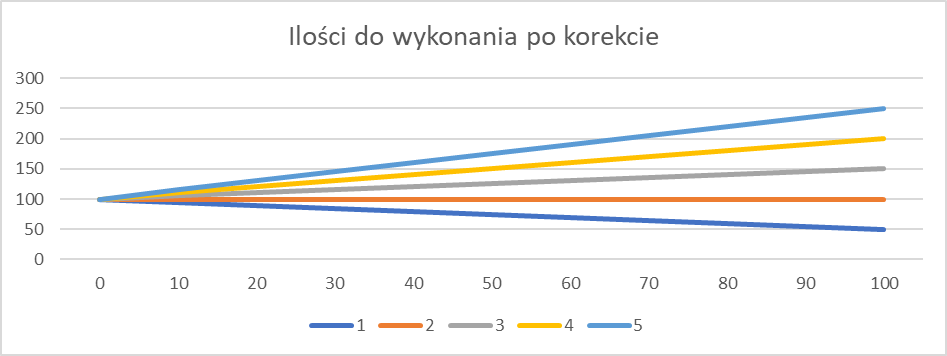 Wyliczenie ilości po korekcie, gdzie standardowo dla dwóch osób przewidziana ilość wynosi 100szt. Ilość po korekcie wyniesie: