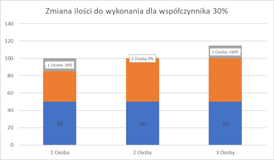 Wyliczenie współczynnika przy zmianie ilości osób z 2 na 1 przy współczynniku 30%: