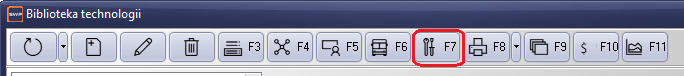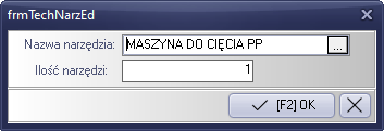 W karcie technologicznej powinny zostać zdefiniowane niezbędne narzędzia potrzebne do wytworzenia danego wyrobu. Listę narzędzi otwieramy przy pomocy klawisza „F7” w głównym oknie procesów technologicznych.