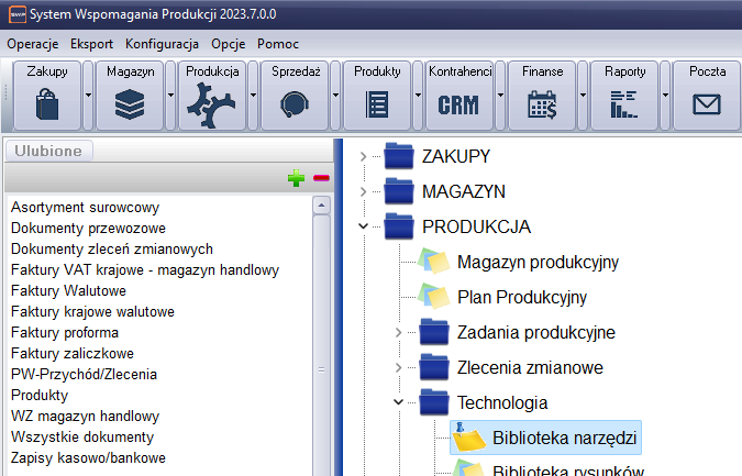 Aby przypisać narzędzia do technologii, należy sporządzić bibliotekę narzędzi. Bibliotekę można znaleźć w głównym menu programu.