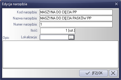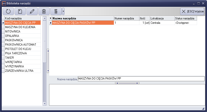 Listą narzędzi zarządzamy przy pomocy standardowych klawiszy (Dodaj, Edytuj, Kasuj). Do modyfikacji służy formularz edycyjny narzędzia.