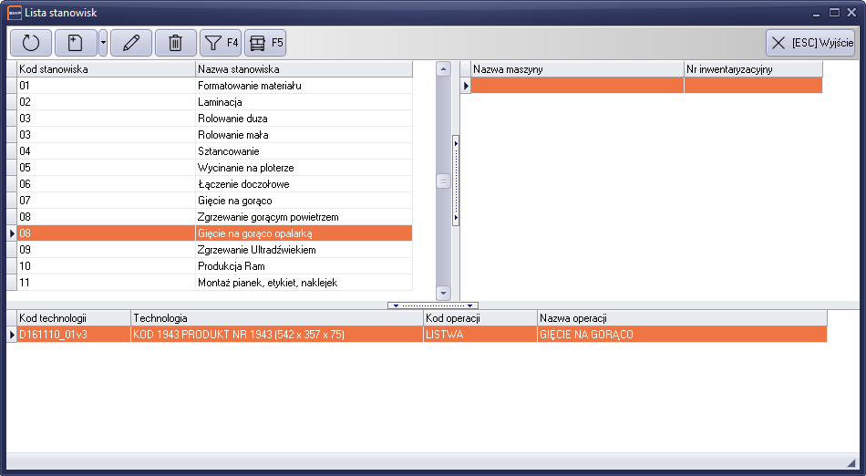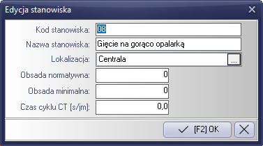 Funkcja umożliwia definicję stanowisk pracy w firmie. Biblioteka dostępna jest z głównego menu programu lub z poziomu okna technologii.