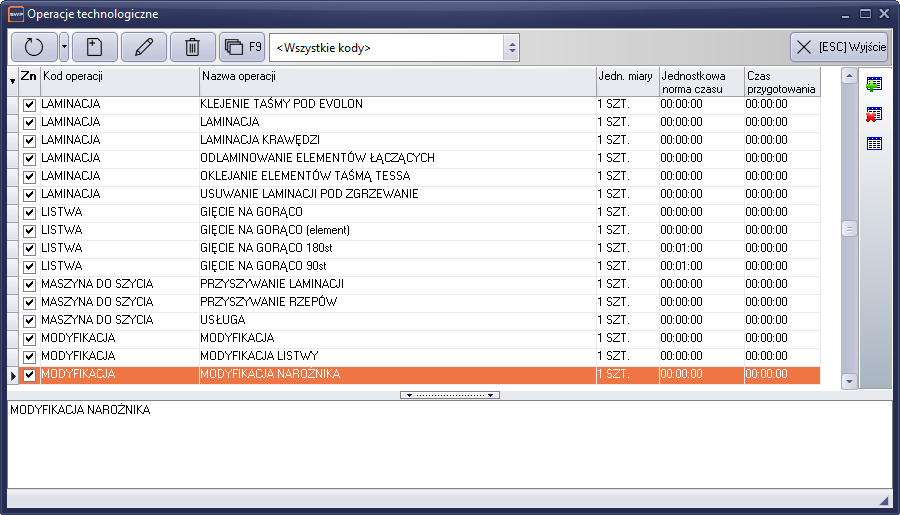 Funkcja umożliwiająca utworzenie biblioteki operacji technicznych, na podstawie której tworzone jest lista operacji w karcie technologicznej. Bibliotekę operacji uruchamiamy z poziomu menu głównego programu.