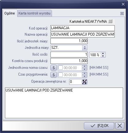 Rysunek 530 Formularz edycji operacji technologicznych