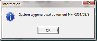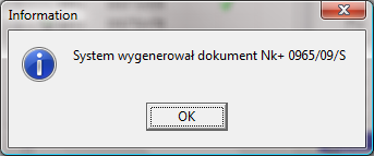 Rysunek 614 Komunikat informujący o automatycznym utworzeniu korekty Nk+