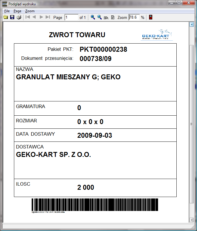 Rysunek 613 Wydruk formularza zwrotu towaru na magazyn