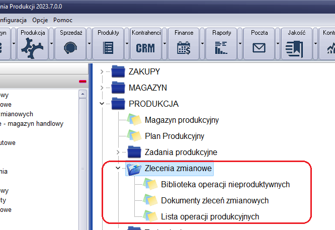 Mechanizm zleceń, umożliwia tworzenie dokumentów zawierających listę operacji technologicznych, przewidzianych do produkcji na danej zmianie. Moduł możemy uruchomić z poziomu menu głównego systemu,