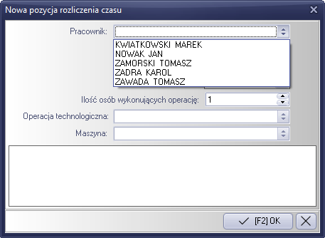 Rysunek 793 Formularz edycji pozycji rejestru (wybór pracownika produkcji).