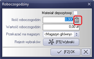 Po uruchomieniu przycisku, w polu „Ilość roboczogodzin”, zostanie wpisana ilość z rejestru roboczogodzin.