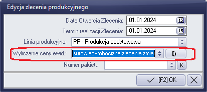 Rysunek 799 Ustawienie sposobu rozliczania zlecenia produkcyjnego.