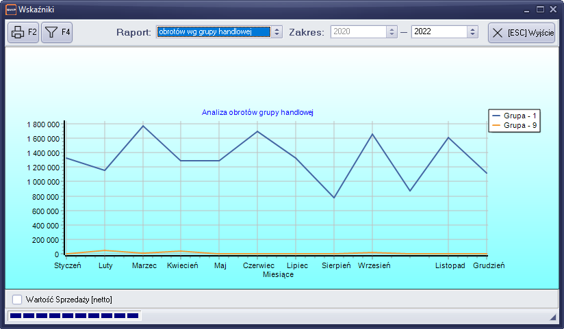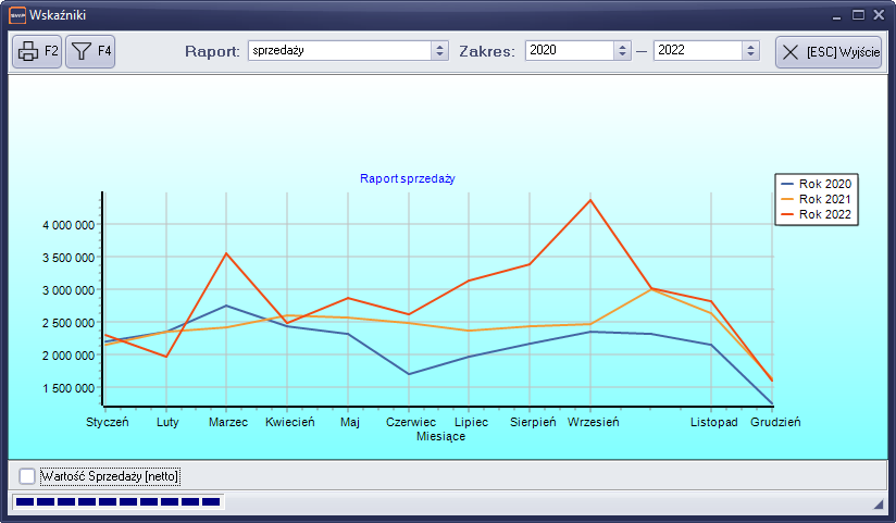 - „Wartość sprzedaży”- pozwala na obserwowanie wskaźnika sprzedaży firmy w odniesieniu do lat poprzednich.