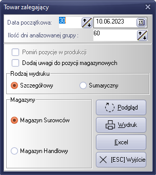 Rysunek 817 Okno ustawień analizy towaru zalegającego