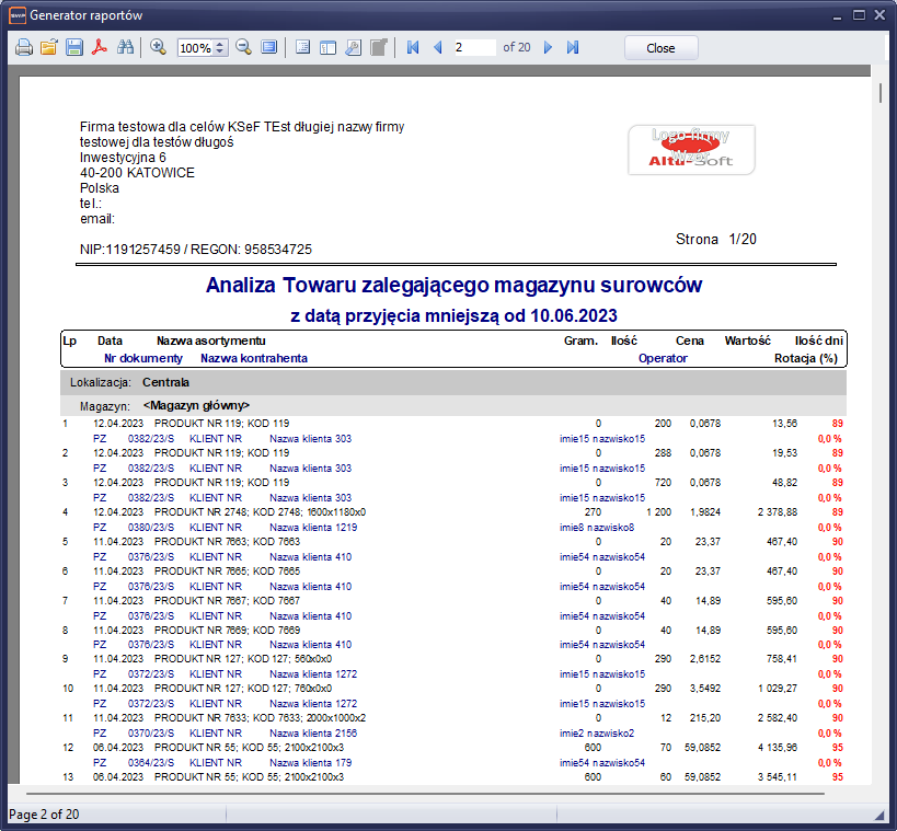 Rysunek 818 Przykładowy wydruk analizy towaru zalegającego