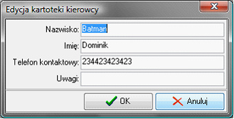 Rysunek 967 Okno edycji kartoteki kierowcy