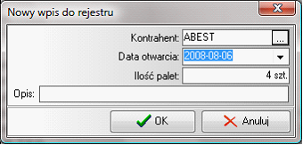 W pasku narzędzi zostały umieszczone standardowe klawisze rejestru „Dodaj”, „Edycja”, „Usuń”. Przy pomocy tych klawiszy możemy zarządzać wpisami do rejestru palet. Klawisze są aktywne tylko dla otwartego miesiąca obrotowego i miesiąca następującego, zgodnie z ustawieniami i opcjach programu.
