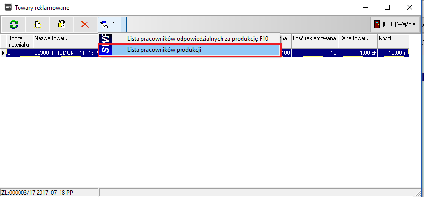 Dodawanie pracowników odpowiedzialnych za produkcję, zostało udostępnione w oknie pozycji towarowych reklamacji.