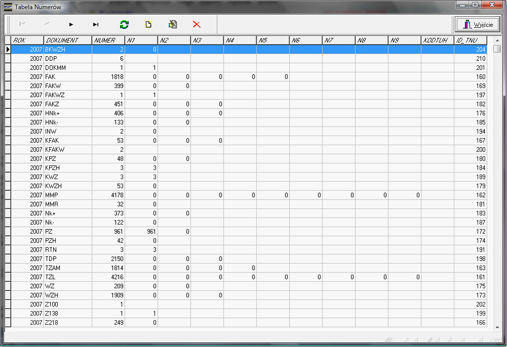 Każdy rodzaj dokumentu oraz każdy rok obrotowy ma zdefiniowany niezależnie rekord w tablicy. Przy definicji dokumentu w kolumnie „NUMER”, widoczny jest ostatni pobrany numer przez dokument. W kolumnach od N1 do N9 wpisywane są numery zwrócone podczas kasowania dokumentów. System przydziela numer sprawdzając od kolumny N9 do N1, czy istnieje przypisany numer. Jeśli znajdzie numer w buforze, to podaje go jako aktualny. Jeśli w buforze nie było numerów, wtedy system pobiera kolejny numer z kolumny „NUMER”. Istnieje możliwość zmiany numerów oraz przypisywanie dowolnych numerów do bufora. Należy jednak czynność tę wykonywać ze szczególną ostrożnością, tak aby nie dopuścić do powielania się numerów dokumentów.