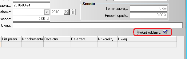 - "Czy zezwalać na faktury wielooddziałowe? ". Opcja dotyczy pracy systemu w trybie wielo-oddziałowym. Włączenie opcji pozwoli na łączenie dokumentów WZ z centrali i oddziałów na jednej fakturze sprzedaży wystawianej w centrali. Opcja udostępnia przełącznik "Pokaż oddziały", w formularzu edycji faktury sprzedaży.