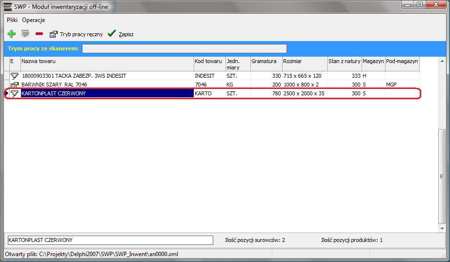 Rysunek 1074 Główne okno modułu, z zaznaczoną pozycja wprowadzoną przy pomocy skanera