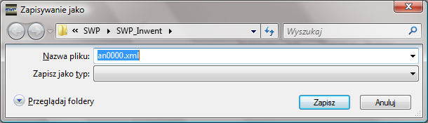 Po uruchomieniu opcji, należy wybrać katalog do którego będą przekazane pliki kartotek. Powinien być to katalog w którym znajduje się plik modułu inwentaryzacji off-line (plik o nazwie „SWP_Inwent.exe”). Synchronizacja kartotek powoduje wygenerowanie trzech plików: