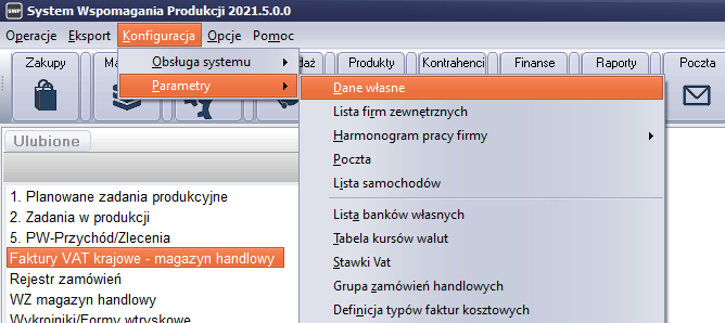 Główny ekran systemu zawiera sekcję funkcjonalności "ulubionych". W to miejsce można wprowadzić dowolną funkcję z menu głównego, tworząc swoistą listę najczęściej używanych funkcjonalności w systemie. Dzięki temu można w szybki sposób uruchomić funkcjonalność, bez szukania w menu. Dodawanie pozycji do menu polega na "przeciągnięciu" myszką, wskazaną funkcję w menu i opuszczenie w obrębie sekcji. Usunięcie pozycji z sekcji polega na "przeciągnięciu" muszą wskazaną pozycję z listy w miejsce nagłówka sekcji. Dodatkowo można użyć klawiszy "+" i "-" umieszczonych w nagłówku sekcji.