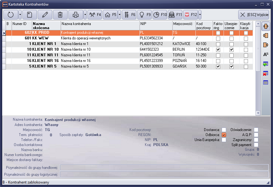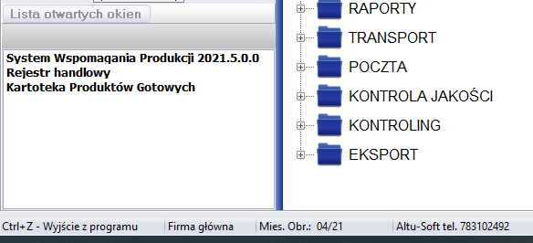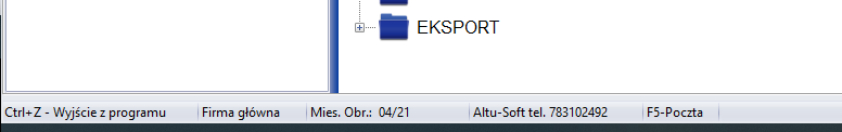 - Pasek menu – pasek ten umieszczony jest najczęściej bezpośrednio pod paskiem tytułowym okna. Pasek ten zawiera funkcje administracyjne sytemu. Dostępność poszczególnych funkcji zależna jest od uprawnień operatora zarejestrowanego w systemie. Kolejne pozycje w menu służą do wywoływania odpowiednich funkcji modułu. Aby uruchomić dowolną funkcje za pomocą menu należy przy użyciu myszki wybrać pozycje odpowiadającą szukanej funkcji, a następnie kliknąć na niej lewym klawiszem myszki. Dla zwolenników klawiatury przygotowane jest inne rozwiązanie. Każda nazwa pozycji w menu ma podkreśloną jedna z liter. Po naciśnięciu kombinacji klawiszy ALT (lewy) + litera zostanie rozwinięta właściwa cześć menu. Nazwa każdej pozycji menu również ma podkreśloną jedna z liter. Wystarczy wybrać z klawiatury właściwą literę, aby wywołać odpowiednia funkcje. Można również zamiast tego, klawiszami strzałka w górę lub strzałka w dół, ustawić sie na odpowiedniej pozycji i nacisnąć ENTER.