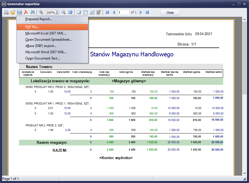 System został wyposażony w nowe mechanizmu eksportu danych. Obecnie generując dowolny wydruk w systemie możemy wyeksportować do pliku typu PDF lub HTML. W niektórych wydrukach istnieje możliwość eksportu również do pliku XML. Aby wykonać eksport danych należy wygenerować wydruk w postaci podglądu i przy pomocy ikony symbolizującej dyskietkę zapisać wydruk do pliku.