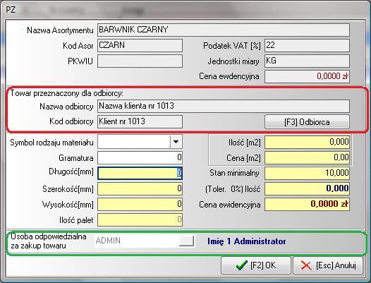 Rysunek 194 Ręczne dodawanie osoby odpowiedzialnej za zakup towaru z poziomu pozycji dokumentu