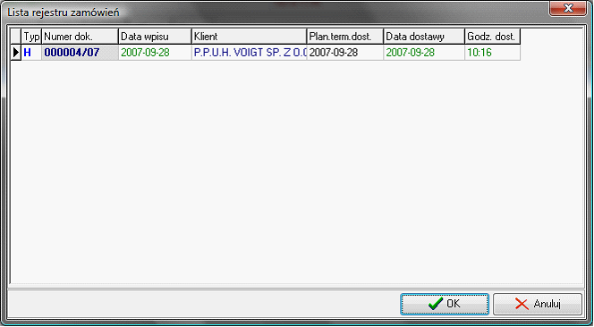 Rysunek 220 Lista wyboru pozycji rejestru zamówień