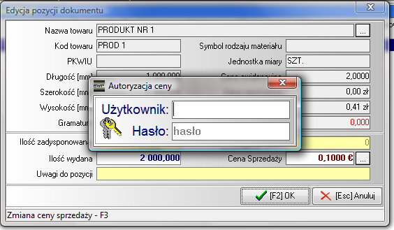Rysunek 216 Autoryzacja zmiany ceny sprzedaży