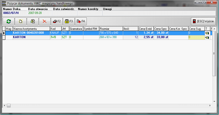 Po zaznaczeniu podświetleniem towar, który chcemy dodać do dokumentu, towar wprowadzamy poprzez potwierdzenie klawiszem „Enter”. Następnie pojawi się formularz edycji pozycji dokumentu.