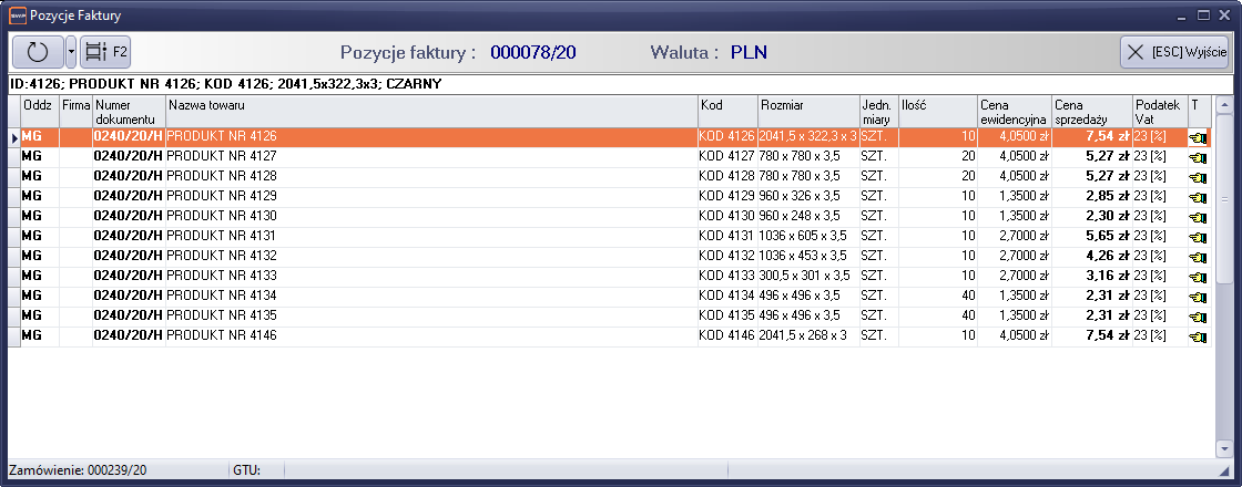 Rysunek 226 Okno przeglądu pozycji dokumentu faktury