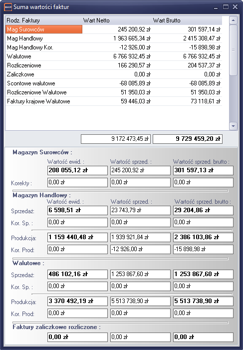 W panelu znajduje się zbiorcza informacja o wartościach faktur z danego zakresu dat.