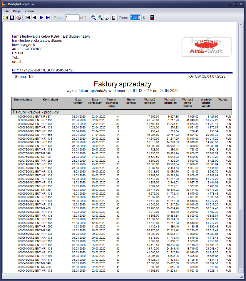 Klawisz [F3] na pasku narzędzi, umożliwia wydrukowanie listy przeglądanych faktur. Z poziomu wydruku można również wyeksportować do programu Excel.