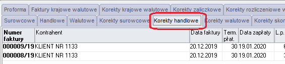 Rysunek 234 Lista pozycji dokumentu korekty faktury