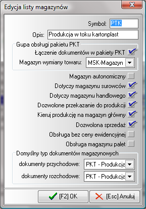 Grupa obsługi pakietu PKT- Jest to grupa parametrów przygotowujących pod-magazyn do pracy w trybie produkcji w toku.