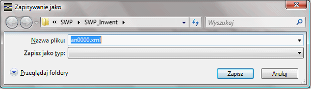 Po uruchomieniu opcji, należy wybrać katalog do którego będą przekazane pliki kartotek. Powinien być to katalog w którym znajduje się plik modułu inwentaryzacji off-line (plik o nazwie „SWP_Inwent.exe”). Synchronizacja kartotek powoduje wygenerowanie trzech plików:
