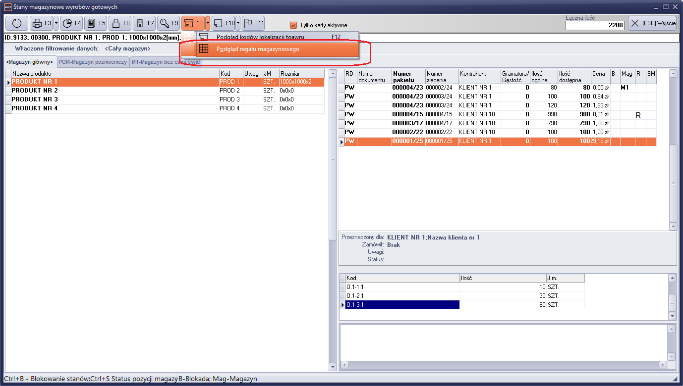Mechanizm kodów lokalizacji towaru, dostępny jest z poziomu okna podglądu stanu magazynowego. W celu podglądu kodów lokalizacji danej pozycji stanu magazynowego używamy klawisza F12.
