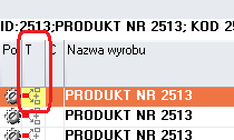 Jeśli technologia została dodana do kartoteki produktu, w liście pozycji zamówienia sygnalizowane jest to odpowiednią ikoną.