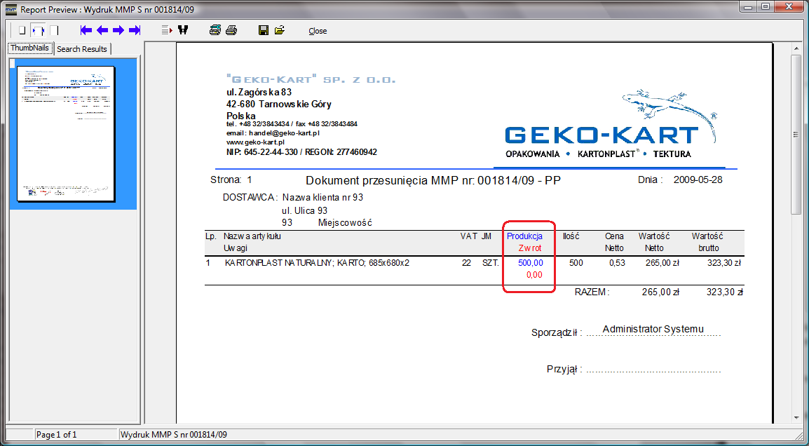 Rysunek 473 Przykładowy wydruk dokumentu MMP
